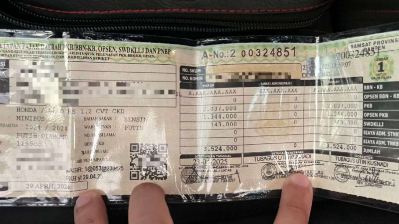 Informasi total biaya pembayaran pajak kendaraaan bermotor akan muncul